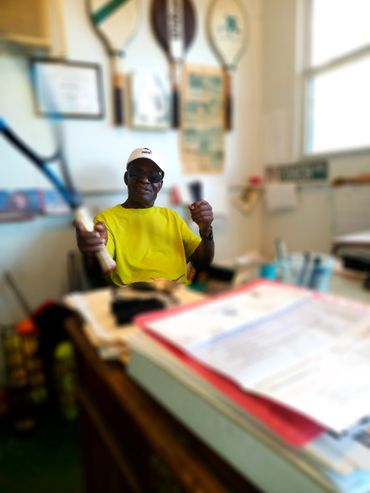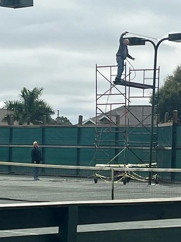 Dan Blowers & Rafael Jimenez resurfacing a court. It takes 1 ton of clay to do 1 court!